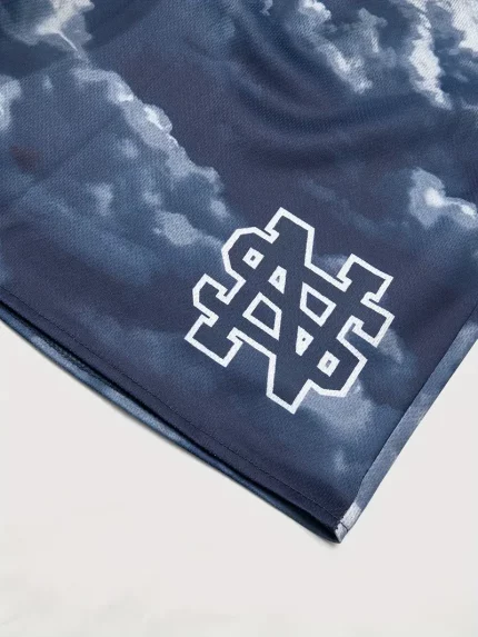 Men’S Casual Athletic Shorts – Blue Tie-Dye Sky Design with Red M” Logo, Loose Fit, Lightweight PolyesterMaterial: PolyesterComposition: 100% PolyesterBelt: