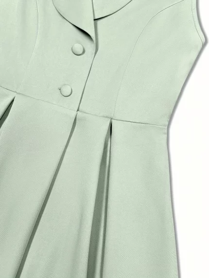 Women’s Elegant Slim Fit Sleeveless V-Neckdress – Button-Up Front