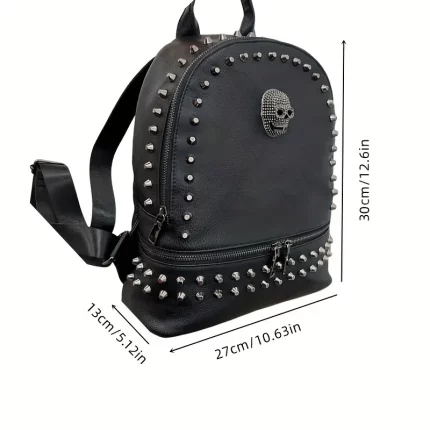 Steampunk Rivet Backpack, Gothic Halloween Skull DaypackPattern: Solid colorMaterial: PUClosure: ZipperFeature: Adjustable strapTheme: Steampunk